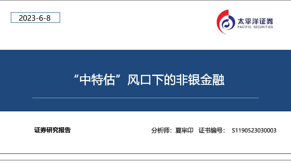 【太平洋证券】【20230608】非银金融行业:“中特估”风口下的非银金融-49页