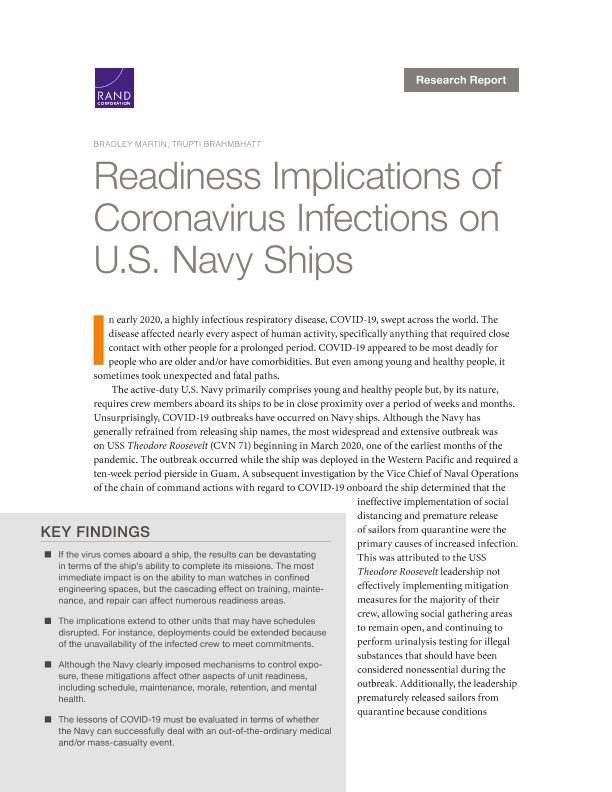 【RAND Corporation】【20210901】冠状病毒感染对美国海军舰艇的战备影响-32页