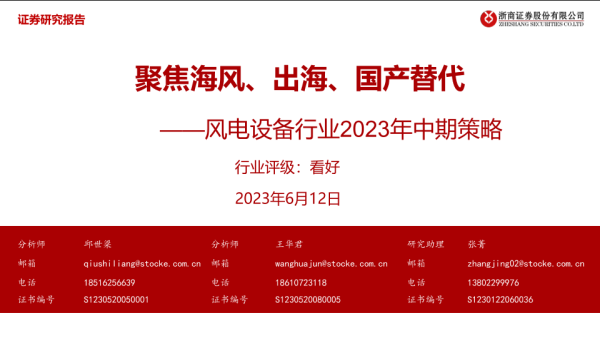 【浙商证券】【20230612】风电设备行业2023中期策略:聚焦海风、出海、国产替代-32页