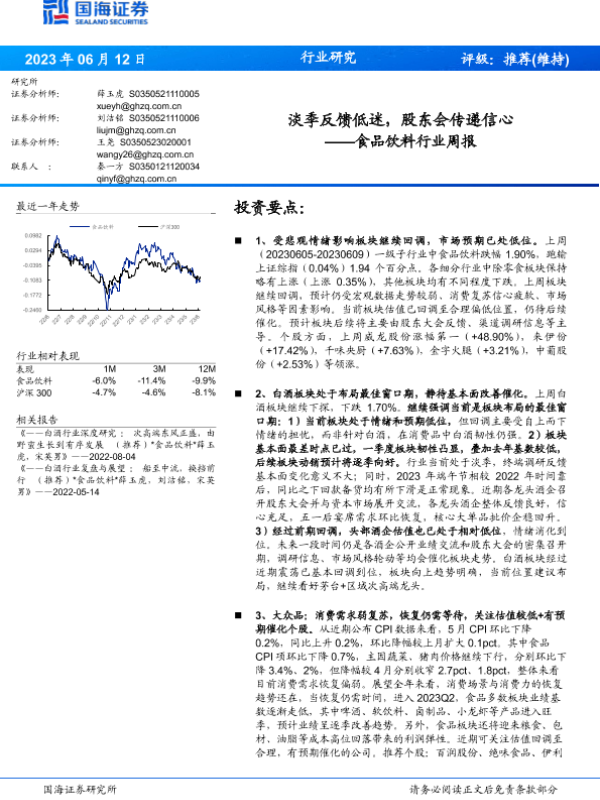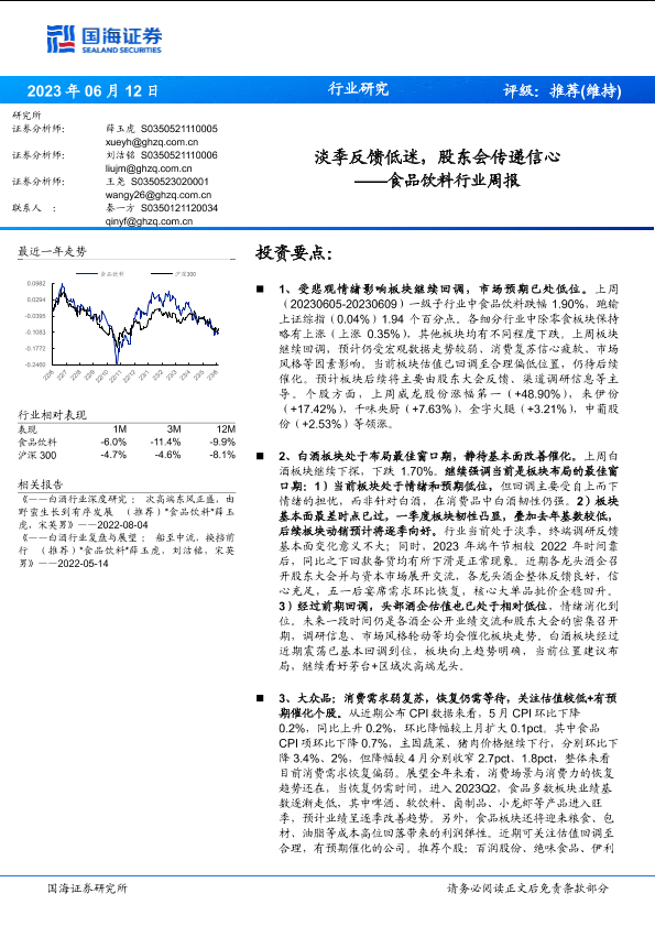 【国海证券】【20230612】食品饮料行业周报:淡季反馈低迷,股东会传递信心-16页