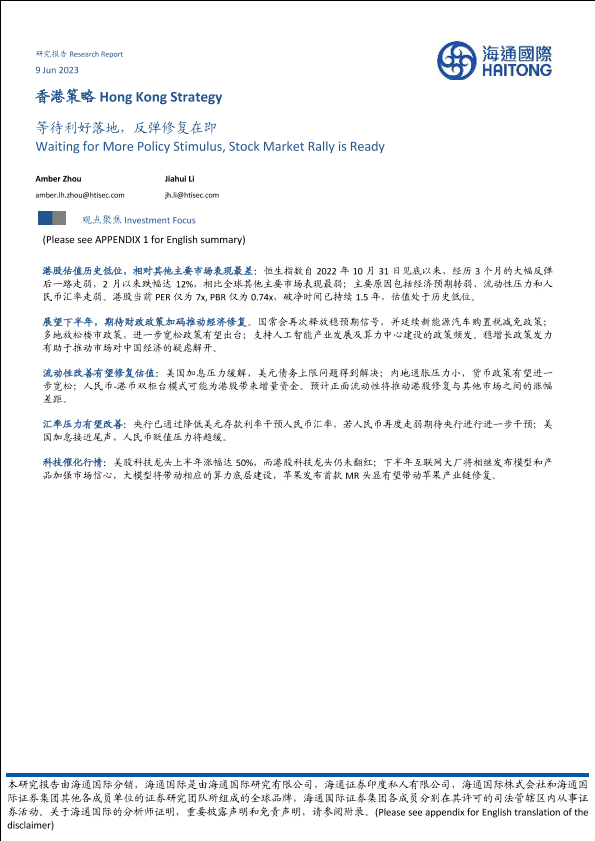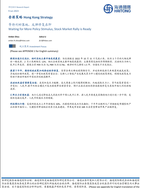 【海通国际】【20230609】香港策略:等待利好落地,反弹修复在即-22页