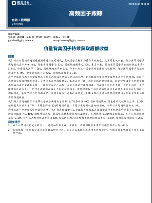 【国金证券】【20230611】高频因子跟踪:价量背离因子持续获取超额收益-15页