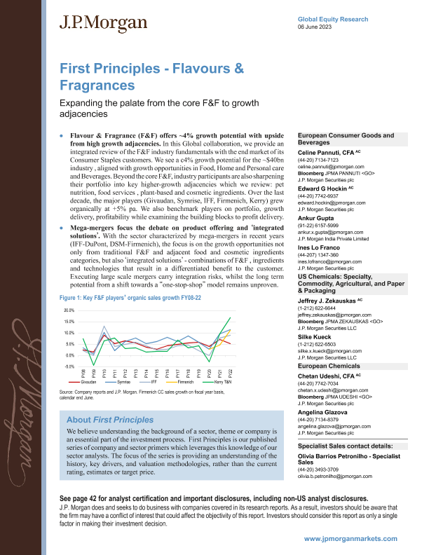【J.P. Morgan】【202306】First Principles - Flavours & Fragrances Expanding the palate from the core F&F to growth adjacencies-50页