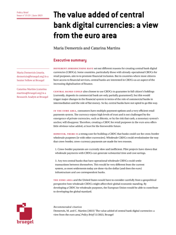 【布鲁盖尔研究所】【202306】央行数字货币的增值:来自欧元区的观点-19页