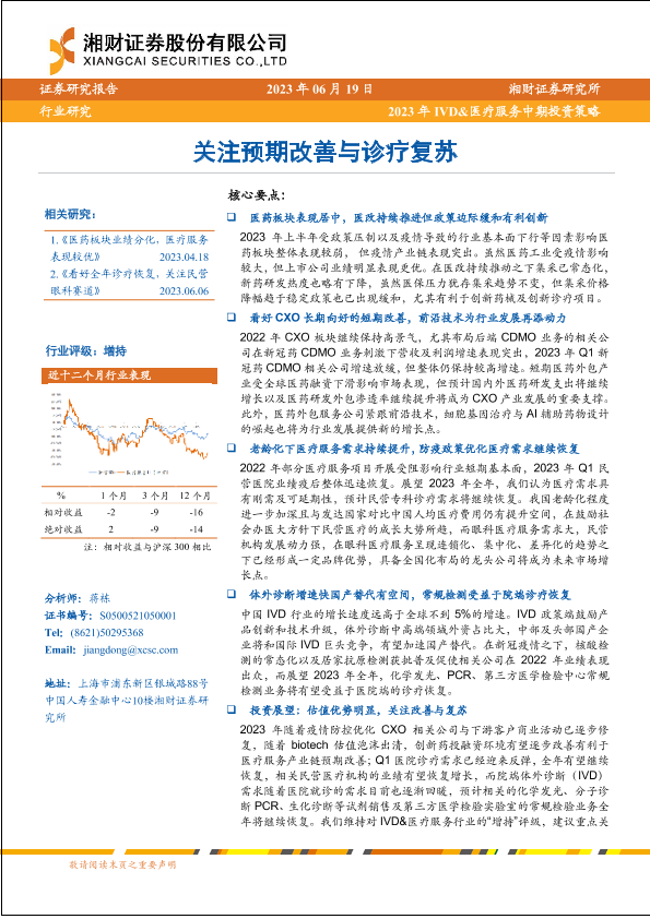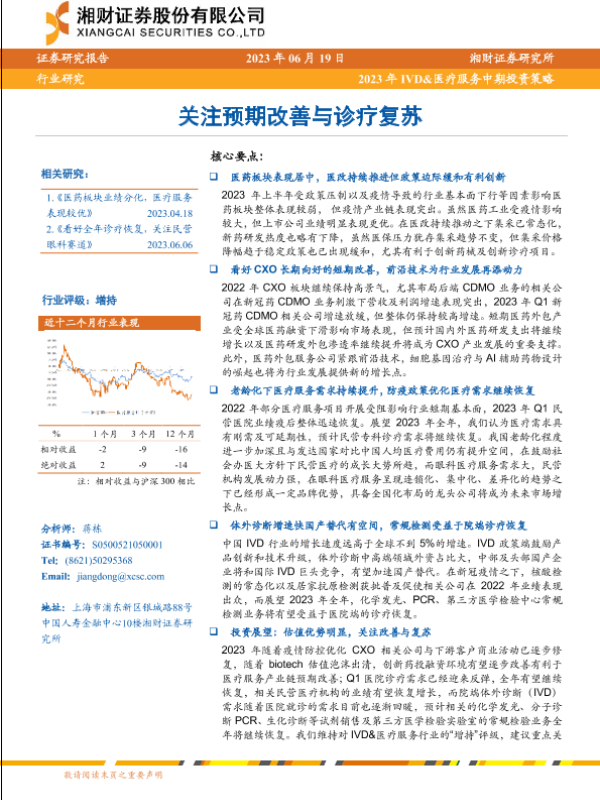 【湘财证券】【20230619】2023年IVD&医疗服务行业中期投资策略:关注预期改善与诊疗复苏-38页