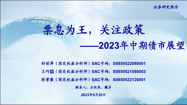 【海通证券】【20230620】2023年中期债市展望:票息为王,关注政策-23页
