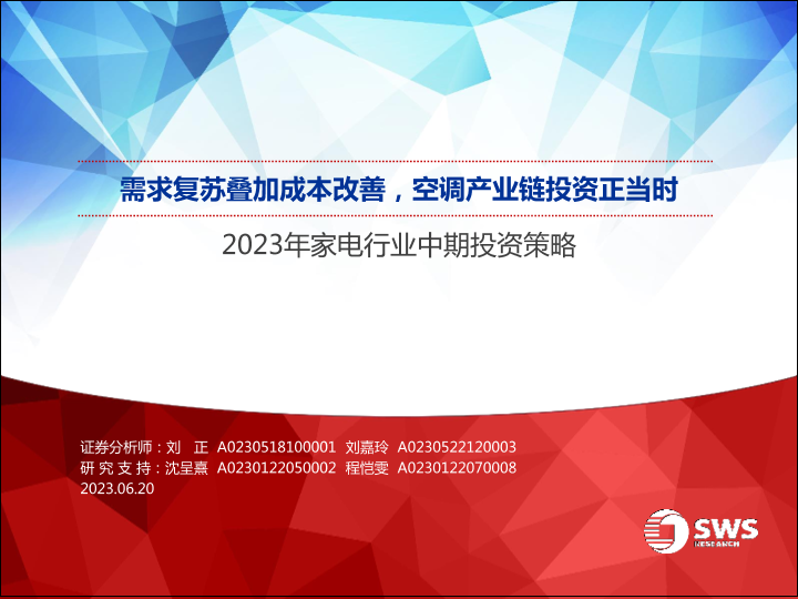 【申万宏源】【20230620】2023年家电行业中期投资策略:需求复苏叠加成本改善,空调产业链投资正当时-46页