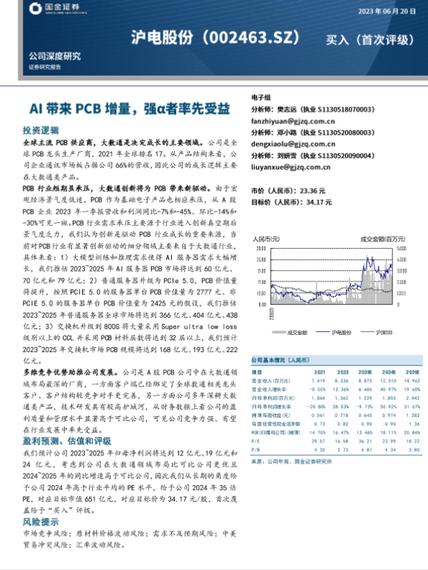 【国金证券】【20230620】AI带来PCB增量,强α者率先受益-33页