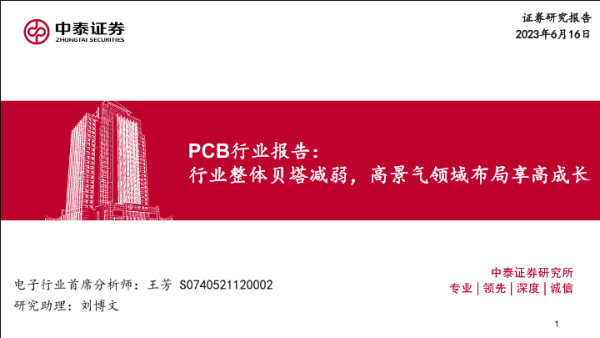 【中泰证券】【20230616】PCB行业报告:行业整体贝塔减弱,高景气领域布局享高成长-51页