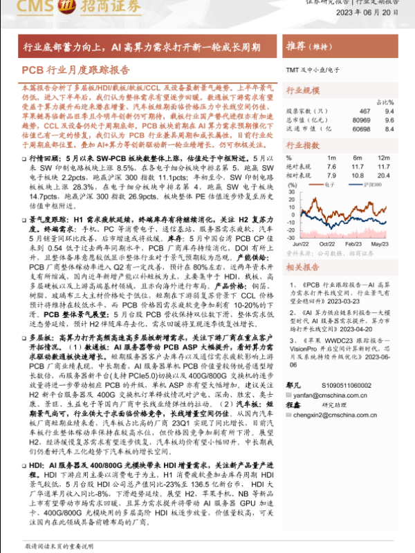 【海通证券】【20230620】PCB行业月度跟踪报告:行业底部蓄力向上,AI高算力需求打开新一轮成长周期-35页