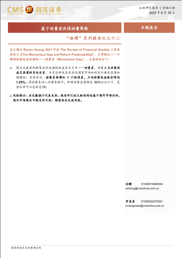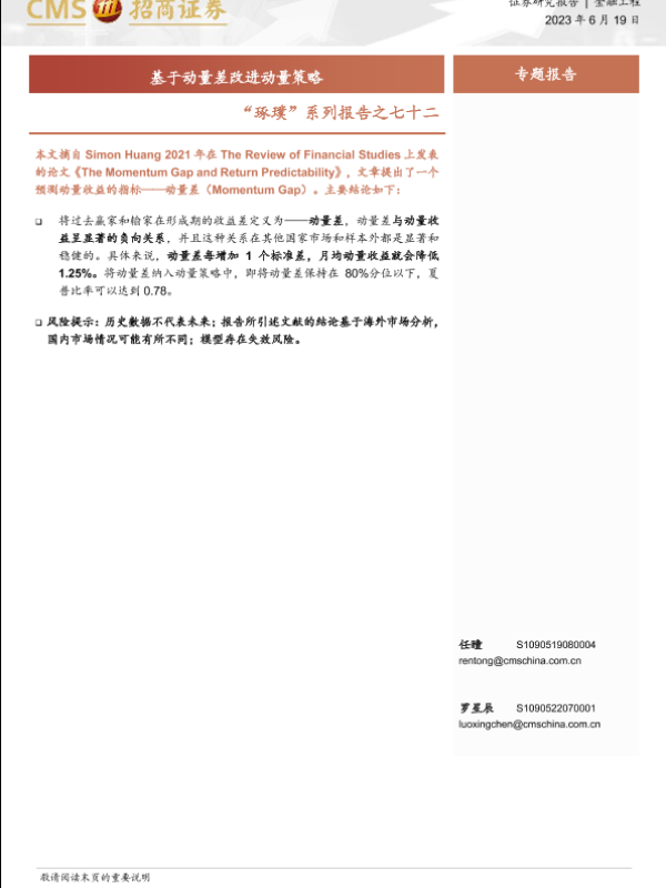 【海通证券】【20230619】“琢璞”系列报告之七十二:基于动量差改进动量策略-22页