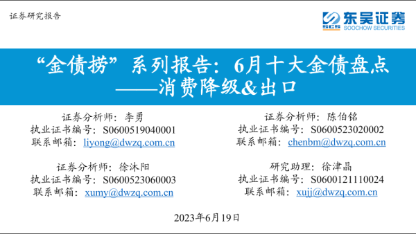 【东吴证券】【20230619】“金债捞”系列报告:6月十大金债盘点,消费降级&出口-61页