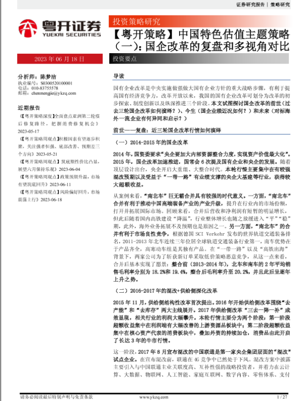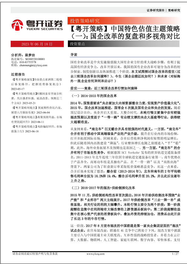 【粤开证券】【20230618】中国特色估值主题策略(一):国企改革的复盘和多视角对比-27页