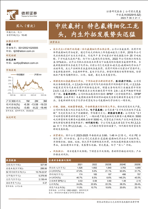 【德邦证券】【20230621】中欣氟材(002915):特色氟精细化工龙头,内生外拓发展势头迅猛-33页