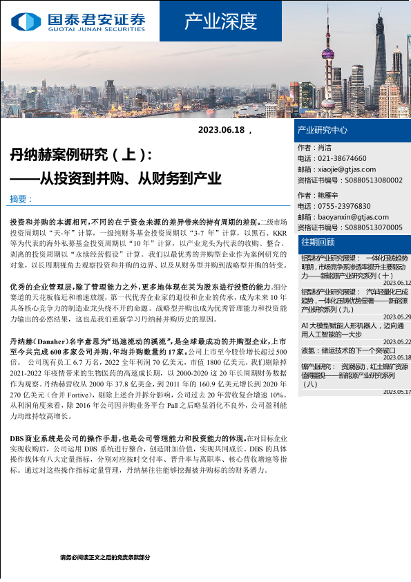【国泰君安证券】【20230618】产业深度:丹纳赫案例研究(上),从投资到并购、从财务到产业-15页