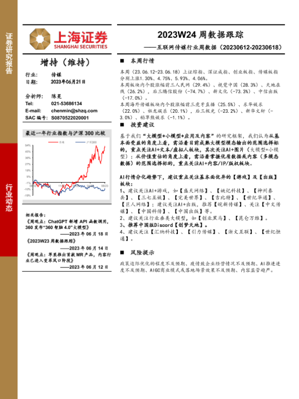【上海证券】【20230621】互联网传媒行业周数据:2023W24周数据跟踪-21页