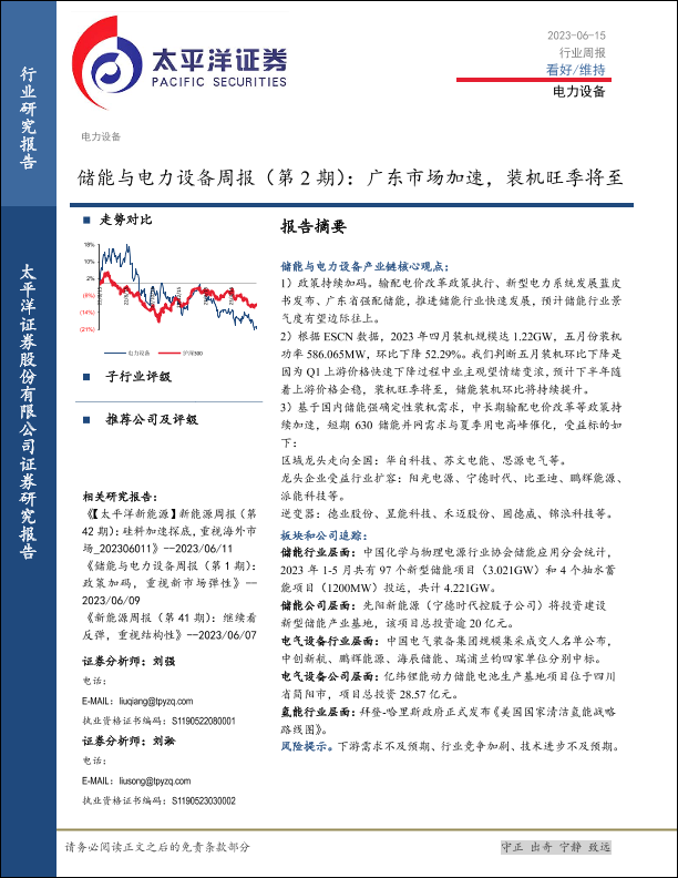【太平洋证券】【20230615】储能与电力设备周报(第2期):广东市场加速,装机旺季将至-16页