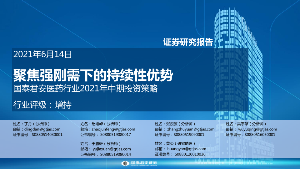 【国泰君安证券】【20210614】医药行业2021年中期投资策略:聚焦强刚需下的持续性优势-61页