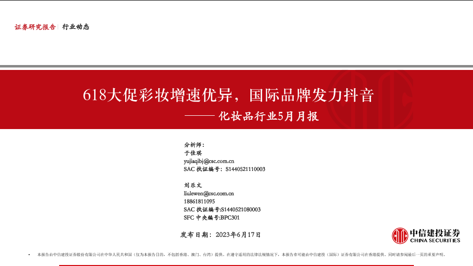 【中信建投证券】【20230617】化妆品行业5月月报:618大促彩妆增速优异,国际品牌发力抖音-38页