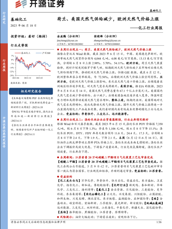 【开源证券】【20230618】化工行业周报:荷兰、美国天然气供给减少,欧洲天然气价格上涨-36页