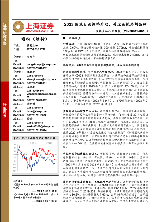 【上海证券】【20230617】医药生物行业周报:2023医保目录调整启动,关注医保谈判品种-24页