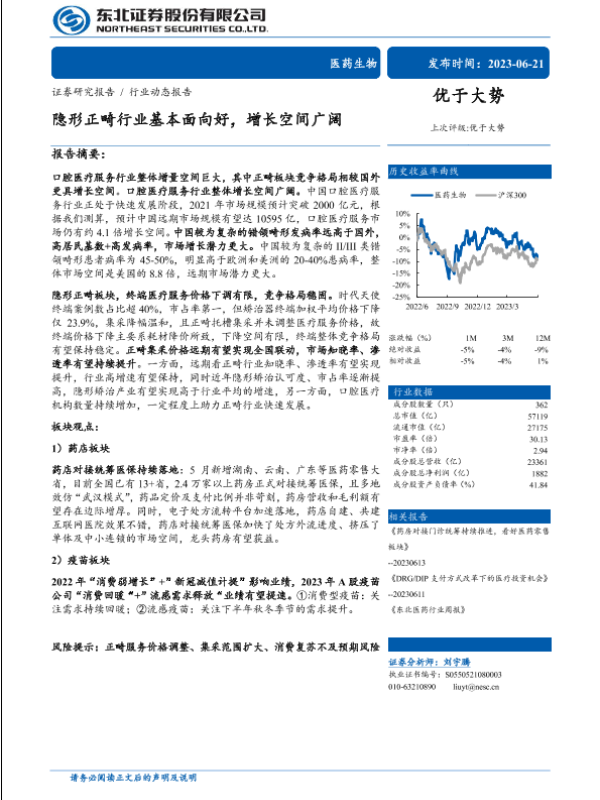 【东北证券】【20230621】医药生物行业:隐形正畸行业基本面向好,增长空间广阔-24页