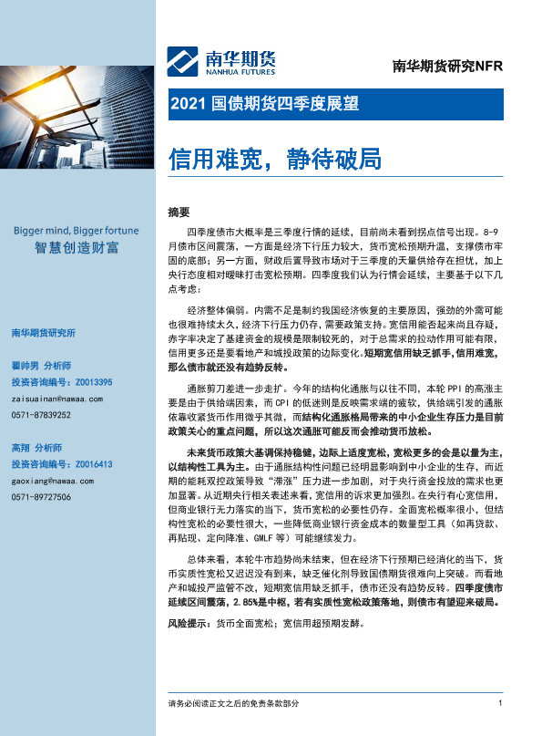 【南华期货】【20210930】2021国债期货四季度展望:信用难宽,静待破局-22页