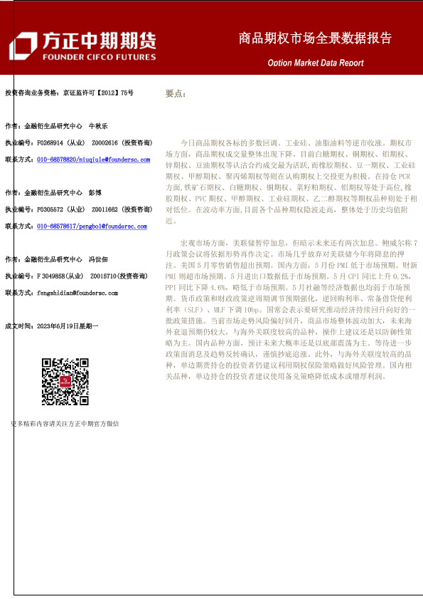 【方正中期期货】【20230619】商品期权市场全景数据报告-95页