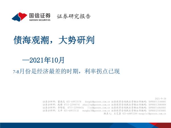 【国信证券】【20210930】2021年10月债海观潮,大势研判:7-8月份是经济最差的时期,利率拐点已现-50页