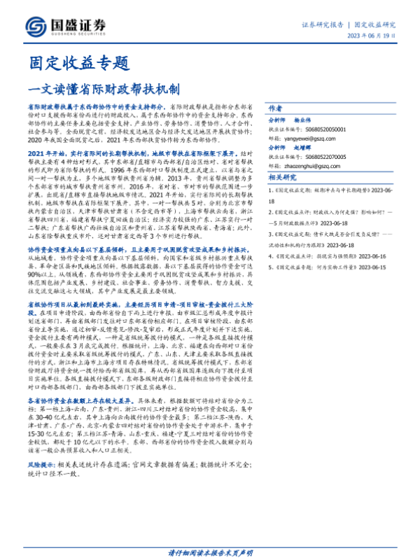【国盛证券】【20230619】固定收益专题:一文读懂省际财政帮扶机制-15页