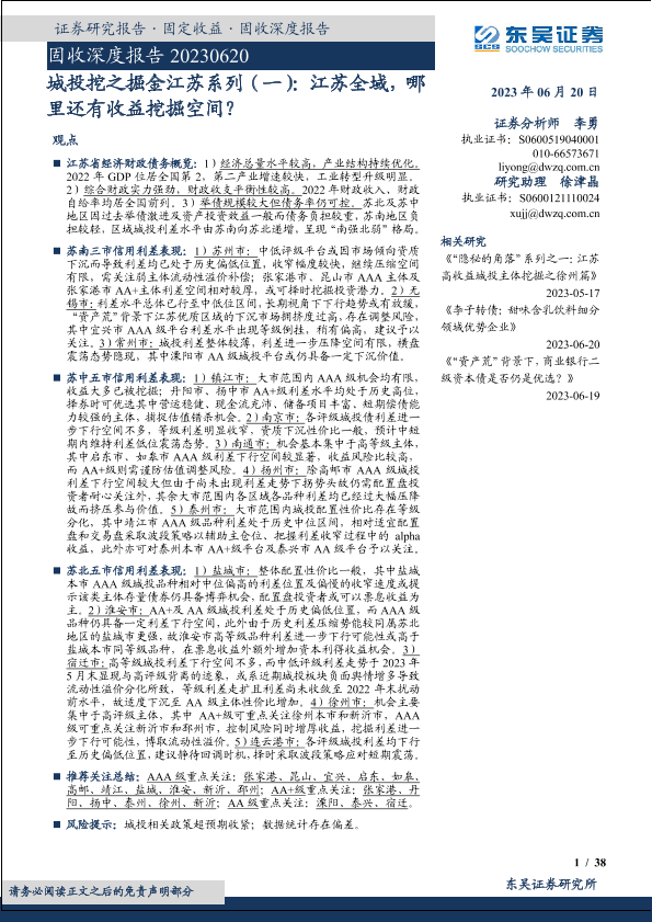 【东吴证券】【20230620】城投挖之掘金江苏系列(一):江苏全域,哪里还有收益挖掘空间?-38页