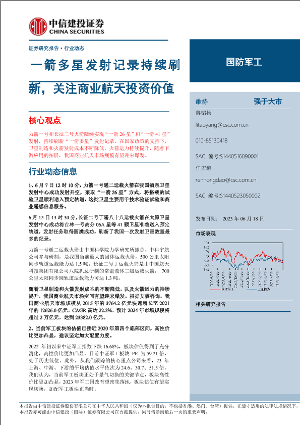 【中信建投证券】【20230618】国防军工行业动态:一箭多星发射记录持续刷新,关注商业航天投资价值-26页