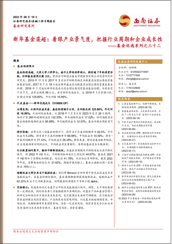 【西南证券】【20230619】基金优选系列之三十二:新华基金栾超,着眼产业景气度,把握行业周期和企业成长性-25页