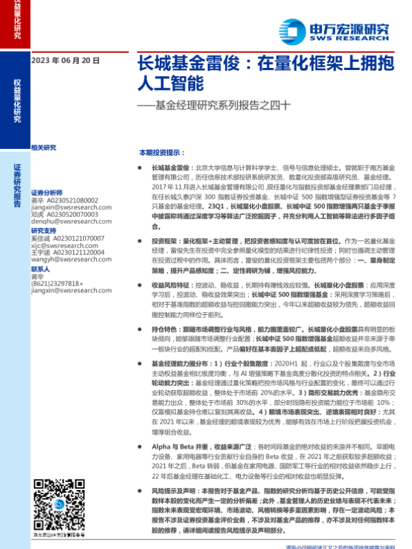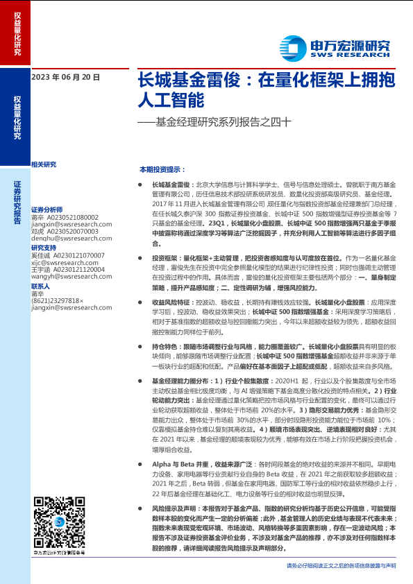 【申万宏源】【20230620】长城基金雷俊,在量化框架上拥抱人工智能-21页