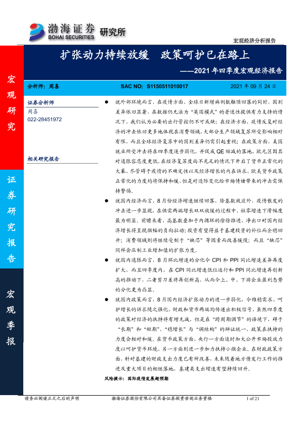 【渤海证券】【20210924】2021年四季度宏观经济报告:扩张动力持续放缓,政策呵护已在路上-22页