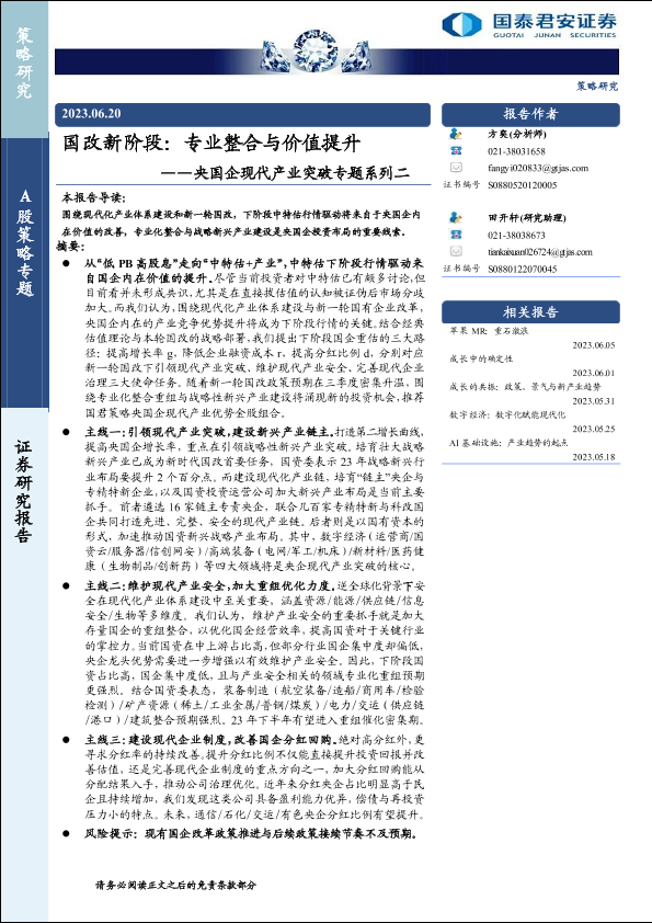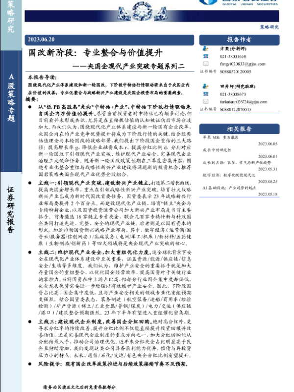 【国泰君安证券】【20230620】国改新阶段:专业整合与价值提升-24页