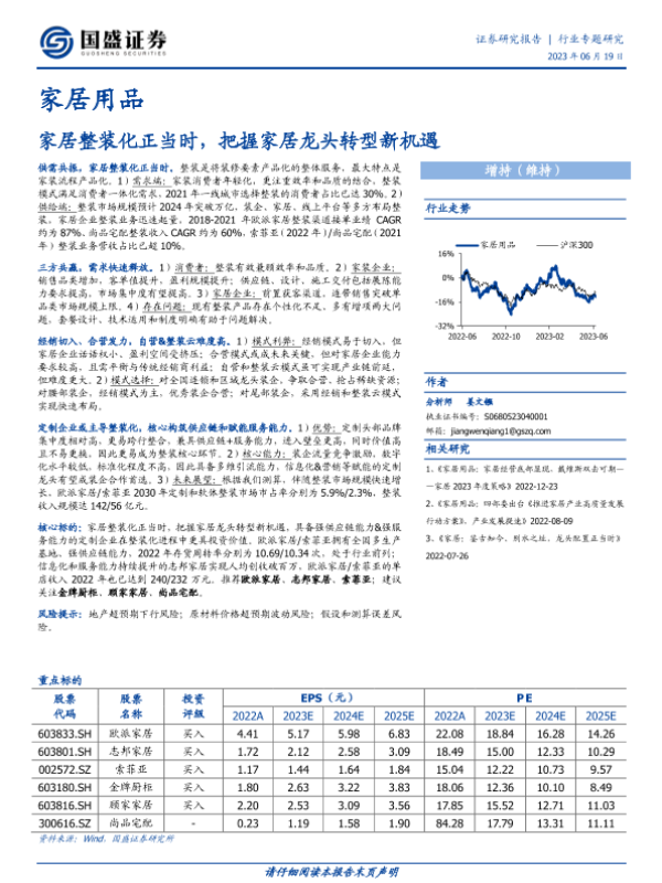 【国盛证券】【20230619】家居用品行业专题研究:家居整装化正当时,把握家居龙头转型新机遇-40页