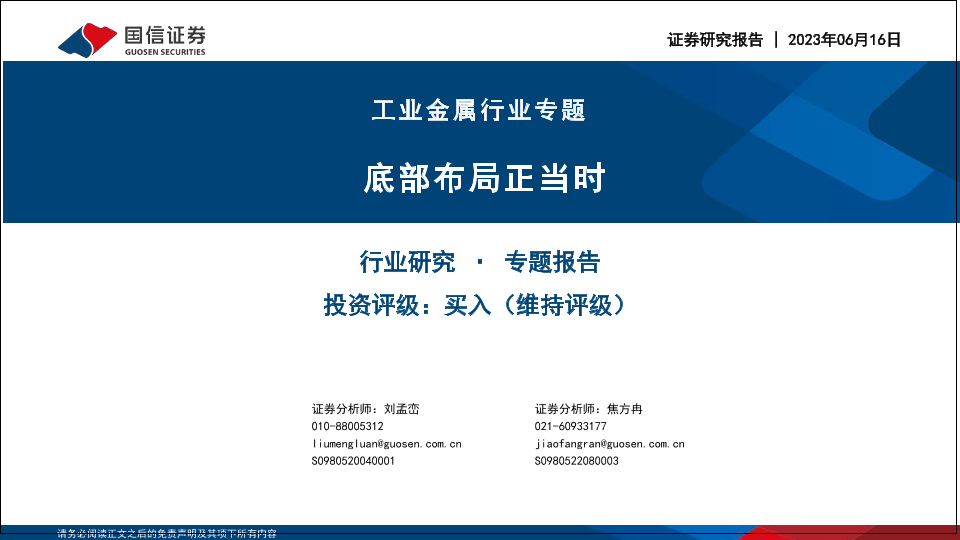 【国信证券】【20230616】工业金属行业专题:底部布局正当时-27页