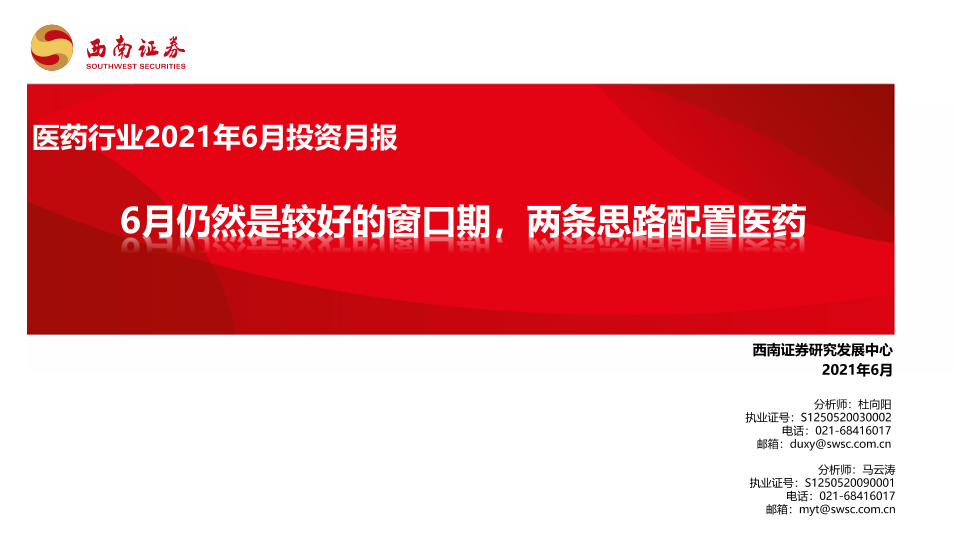 【西南证券】【20210613】医药行业2021年6月投资月报:6月仍然是较好的窗口期,两条思路配置医药-88页
