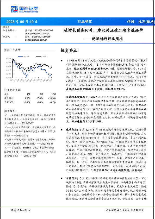 【国海证券】【20230619】建筑材料行业周报:稳增长预期回升,建议关注竣工端受益品种-21页