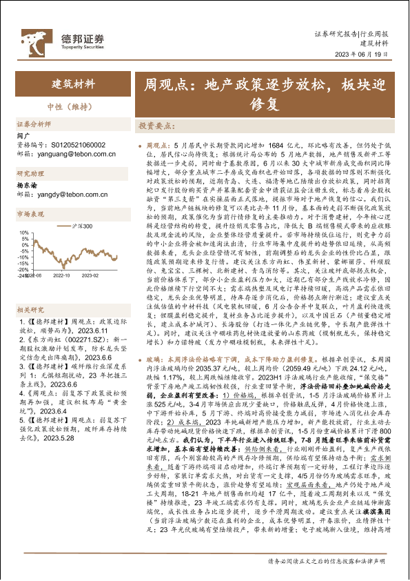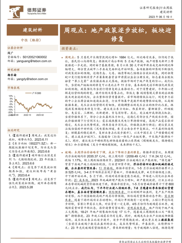 【德邦证券】【20230619】建筑材料行业周观点:地产政策逐步放松,板块迎修复-31页