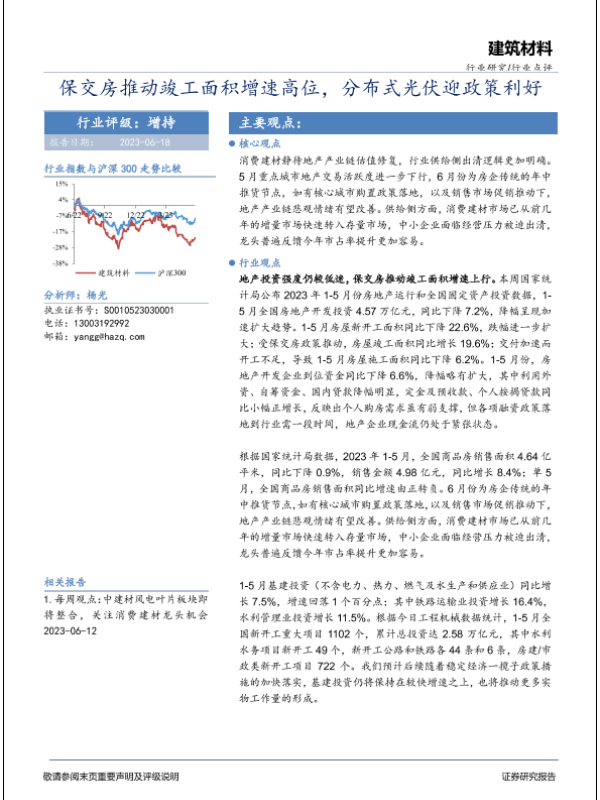 【华安证券】【20230618】建筑材料行业点评:保交房推动竣工面积增速高位,分布式光伏迎政策利好-20页