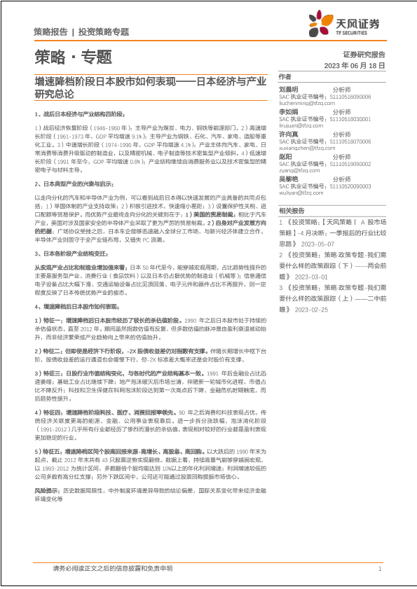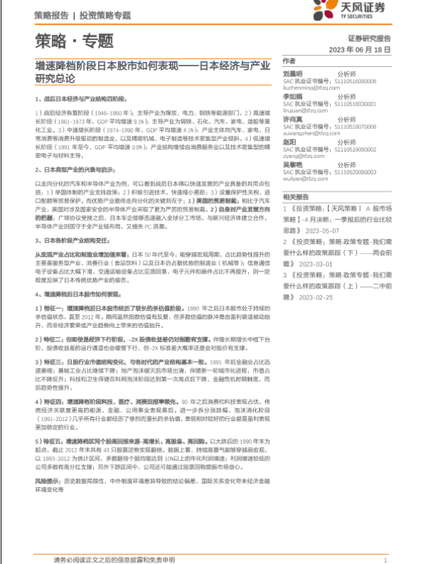 【天风证券】【20230618】日本经济与产业研究总论:增速降档阶段日本股市如何表现-23页