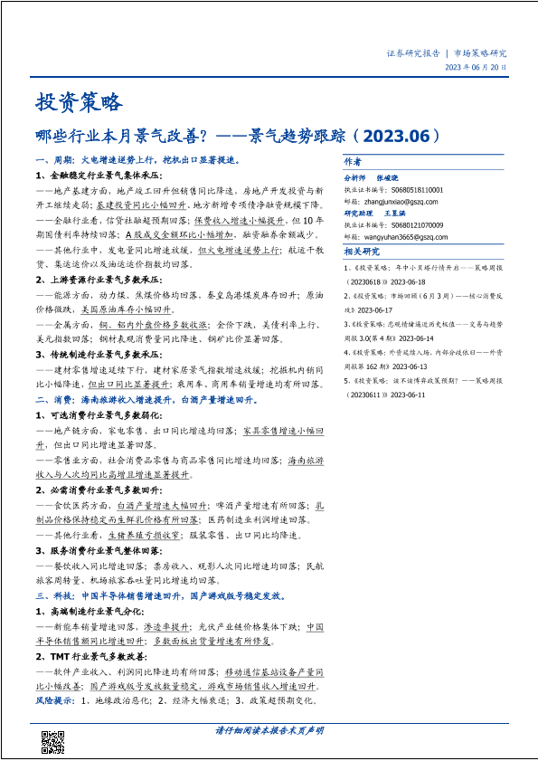 【国盛证券】【20230620】景气趋势跟踪:哪些行业本月景气改善?-27页