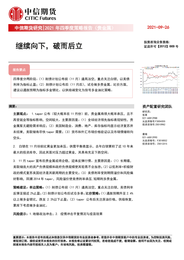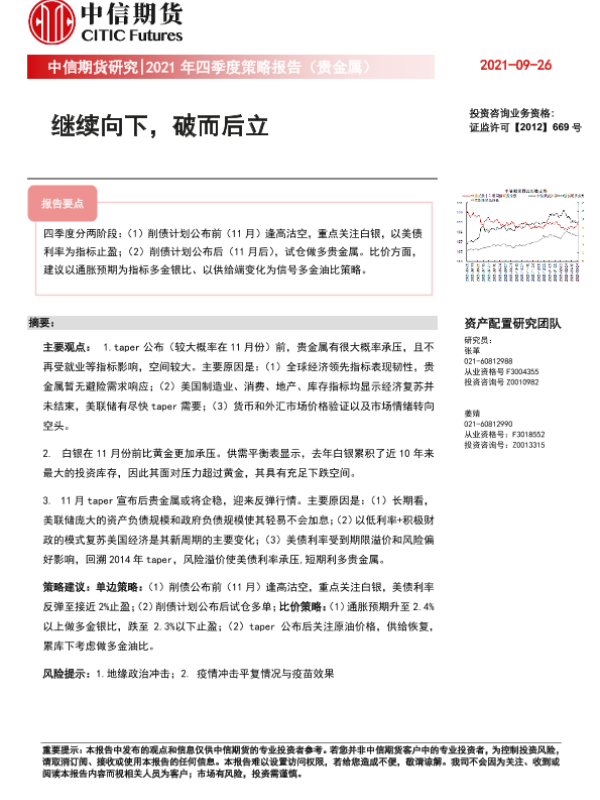 【中信期货】【20210926】2021年四季度策略报告(贵金属):继续向下,破而后立-24页