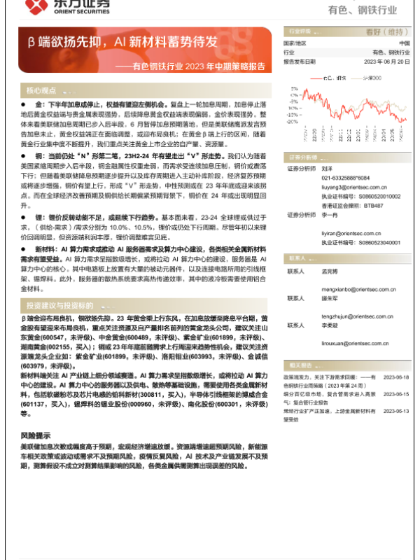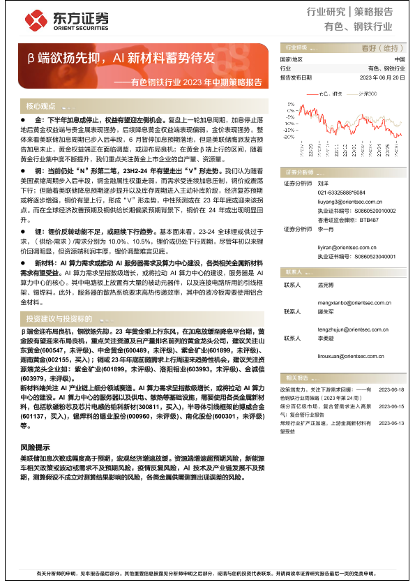 【东方证券】【20230620】有色钢铁行业2023年中期策略报告:β端欲扬先抑,AI新材料蓄势待发-54页