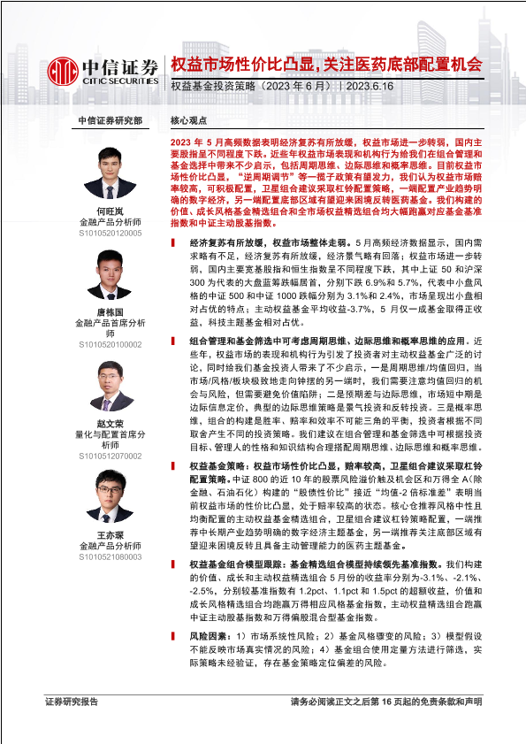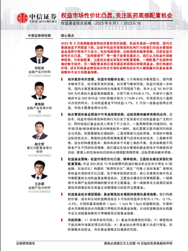【中信证券】【20230616】权益基金投资策略(2023年6月):权益市场性价比凸显,关注医药底部配置机会-17页