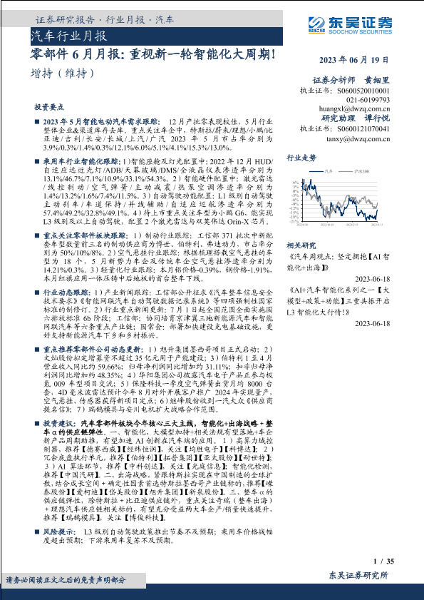 【东吴证券】【20230619】汽车行业月报:零部件6月月报,重视新一轮智能化大周期!-35页