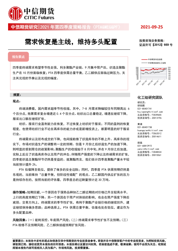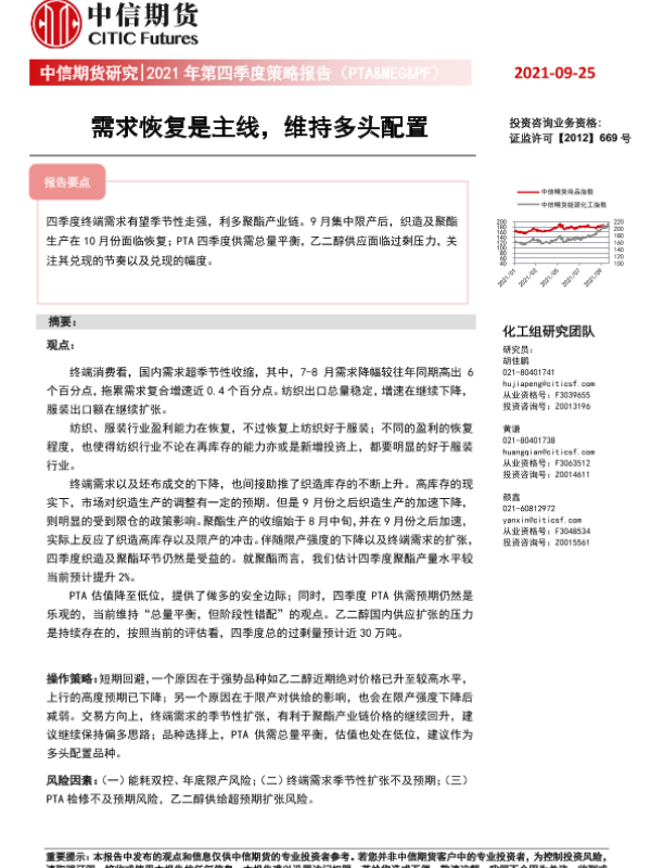 【中信期货】【20210925】2021年第四季度策略报告(PTA&MEG&PF):需求恢复是主线,维持多头配置-21页