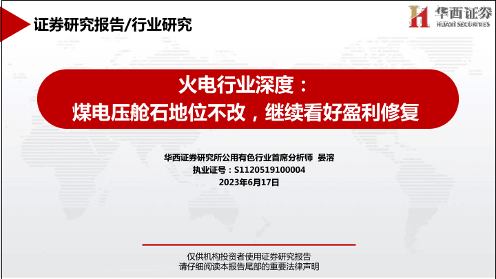 【华西证券】【20230617】火电行业深度-煤电压舱石地位不改-继续看好盈利修复-43页